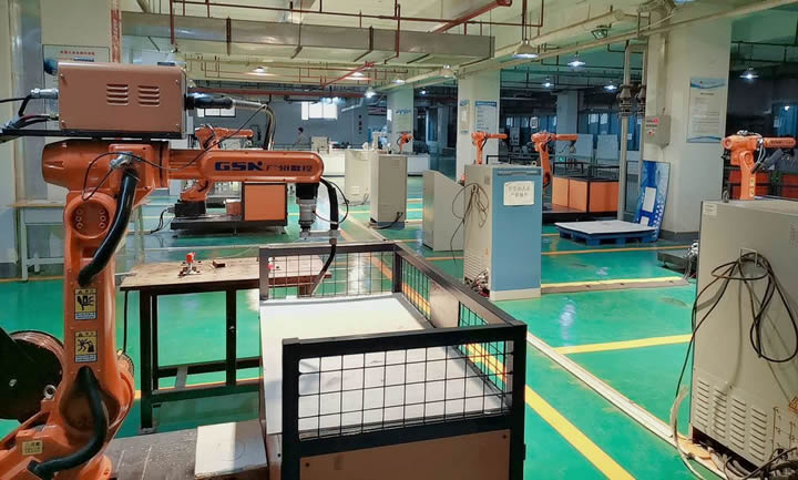 六自由度广数机器人七台、自动化产线一台,其中广数工业机器人焊接工作站一台、机加工工作站两台、码垛工作站两台、喷涂机器人两台。
