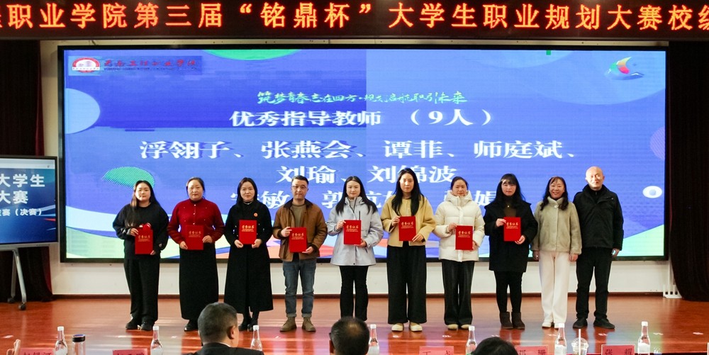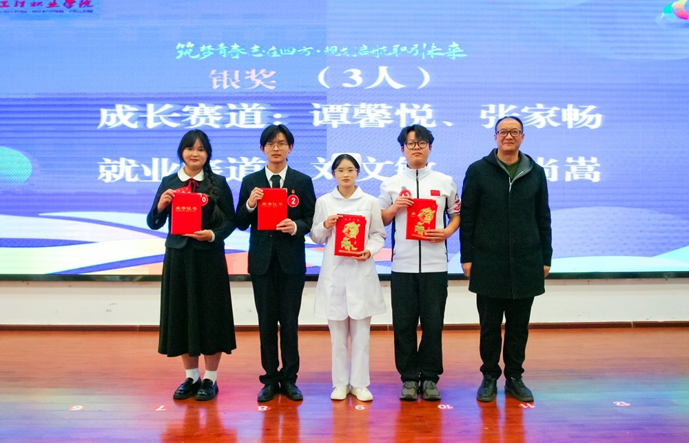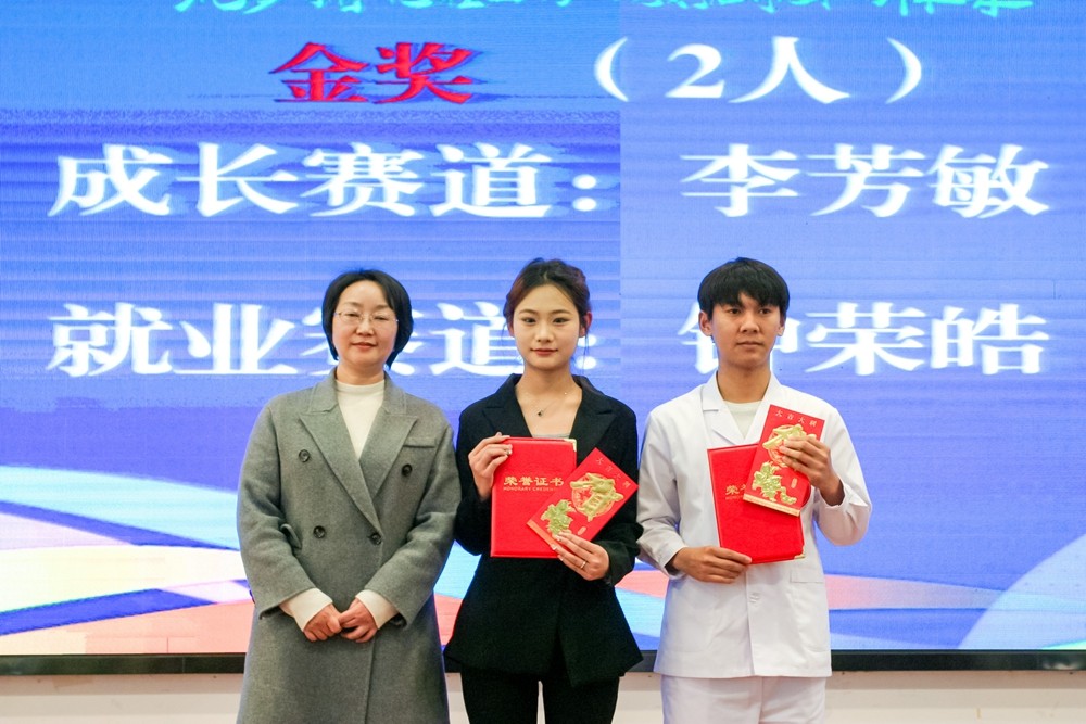 经过激烈角逐李芳敏、钟荣皓分别斩获成长赛道、就业赛道金奖;谭馨悦、张家畅、周尚嵩4人获银奖;王瑞婷、张朝阳、段茹心3人获铜奖;祖黛淼、杨吴霞、张玲、李洁彩4人获优秀奖;谭菲、浮翎子、张燕会、师庭斌、刘瑜、刘锦波、郭航如、宋敏、张娟9名教师获评优秀指导老师。