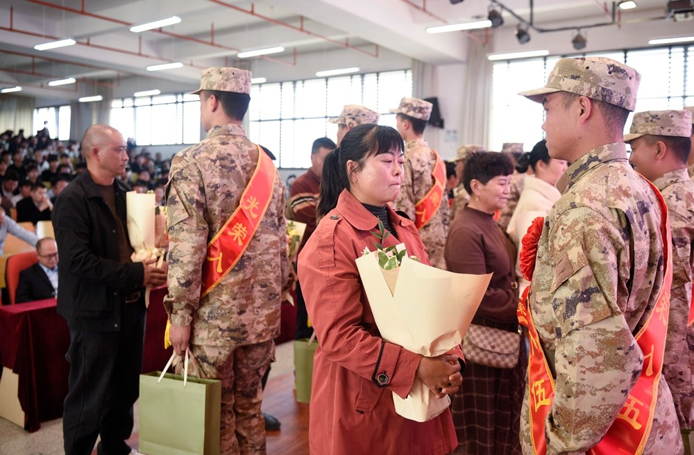 仪式高潮,全体新兵庄严宣誓,铮铮誓言彰显报国初心与青春担当。宣誓后,新兵与学校领导、家属合影留念,在校师生夹道欢送,为新兵送上美好祝福。