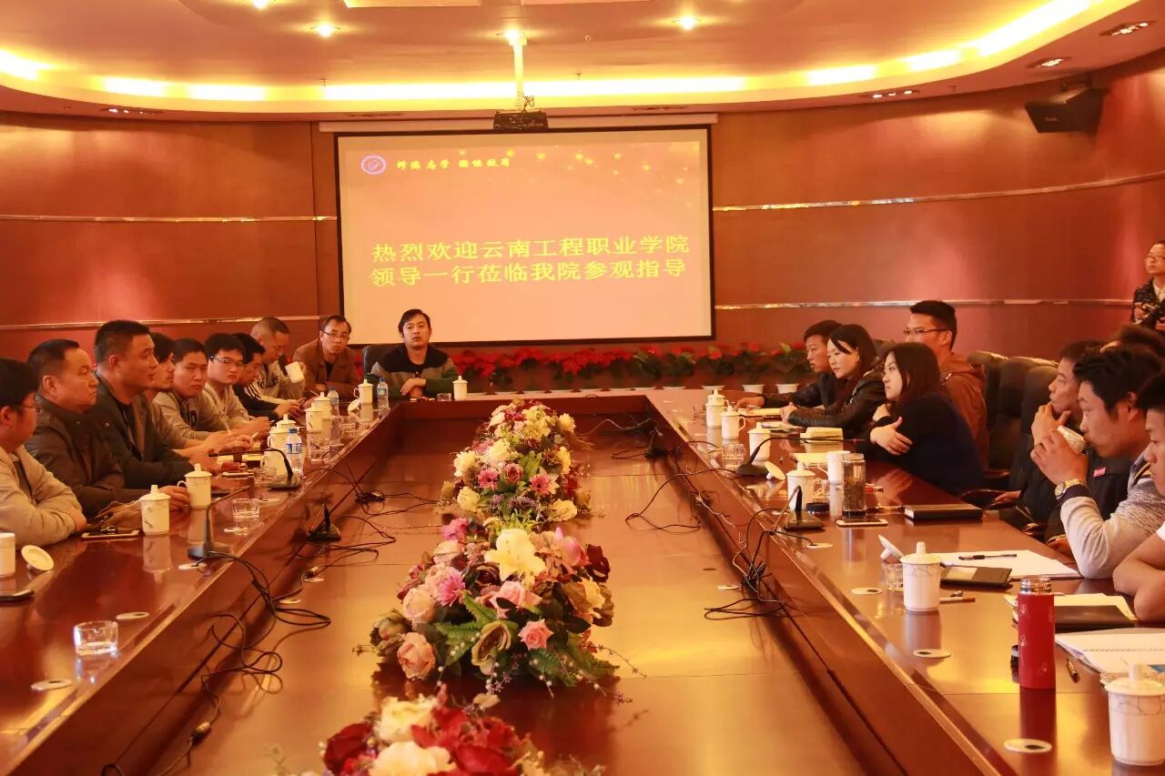 2015年11月9日下午,云南工程职业学院党委书记王忠星、学院副院长占龙祥带领云南工程职业学院党委办公室工作人员、学院学生管理口的处级干部及工作人员,前往云南经贸外事职业学院进行交流学习。