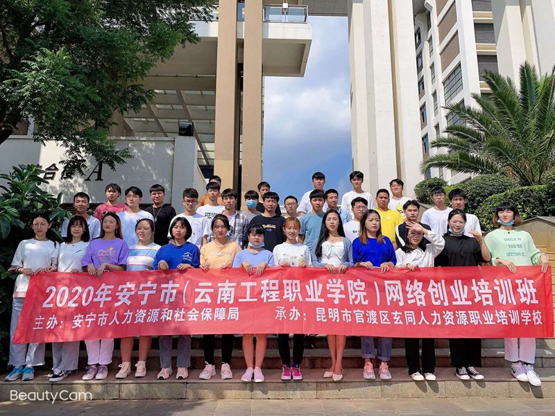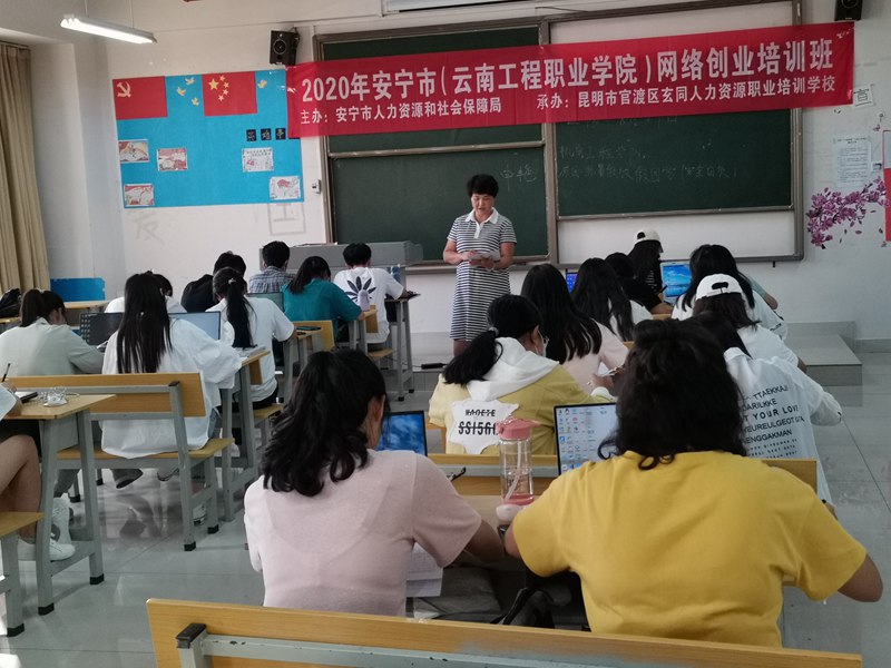 2020年,一场声势浩大的新冠肺炎突如其来,各类学校都推迟了原计划的开学时间。伴随着疫情防控形势的逐渐好转,我校2021届学生逐渐返校,本届学生在完成“小学期”课程后即将踏入社会进行为期1年的实习实践活动。为了让即将毕业的大学生毕业前能增添一项一技之长,拥有(1+X)学历证书+职业(技能)证书的求职优势,提高我校学生就业竞争力及创新创业能力,拓宽学生视野及实践能力,结合市场人才发展需求,同时满足学生网络创业的需求,在昆明市劳动就业服务局、安宁市人力资源和社会保障局、昆明市官渡区玄同人力资源职业培训学校的大力支持下,充分利用毕业生离校前的宝贵时间,我校如期举行了第六期创新创业特色班——网络创业班培训。