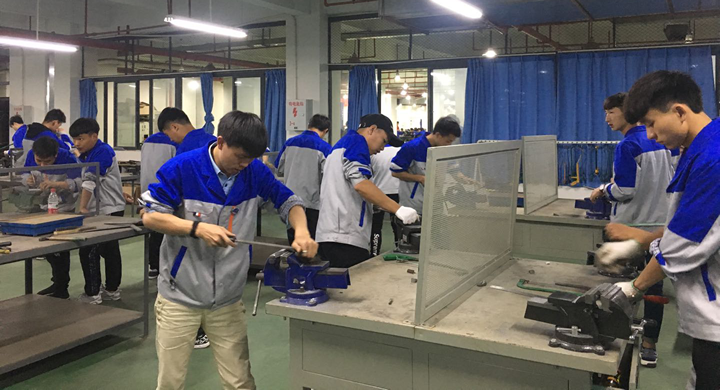 机械实训室主要培养学生们的手工制作能力以及掌握钳工、焊工的基本技能,目前承担着数控技术、机电一体化技术